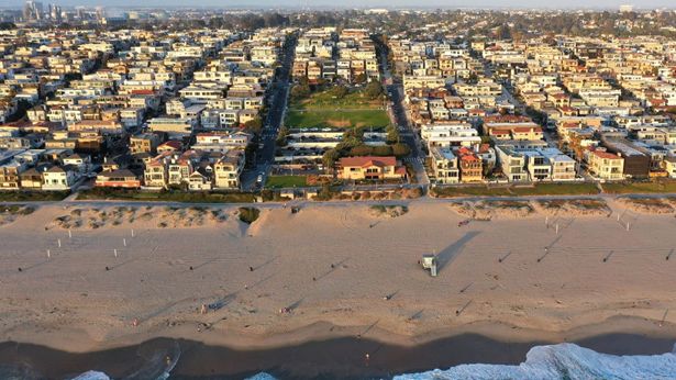 An aerial view of Bruce’s Beach in Manhattan Beach, California. The beachfront property was once a seaside resort owned by Charles and Willa Bruce—a Black couple—which catered to African Americans. Amid the Jim Crow era, the city claimed the property in 1924 through eminent domain and vastly underpaid the couple for the land. Los Angeles County is making plans to return the prime beachfront property, which may be worth $75 million, to Bruce family descendants. Mario Tama
